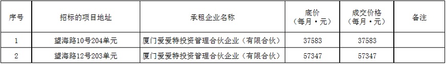 根據思明區國有企業(yè)資產(chǎn)出租管理的相關(guān)制度,我司2019年5月10日上午9:00起于觀(guān)音山營(yíng)運中心2號樓2層2號會(huì )議室進(jìn)行公開(kāi)招租現場(chǎng)開(kāi)標,現通過(guò)思明控股網(wǎng)站對外發(fā)布成交公告,內容如下: