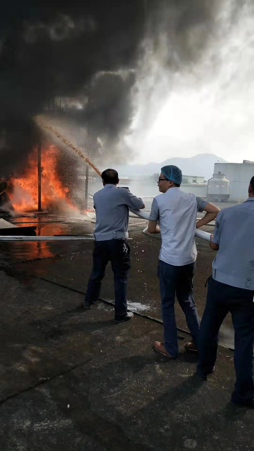 7月16日下午15:30許,巡邏人員發(fā)現8號廠(chǎng)房廈門(mén)科思達衛生制品有限公司樓頂冒起了濃煙?;馂臒o(wú)情,警情就是命令。同安工業(yè)集中區思明園服務(wù)中心立即啟動(dòng)應急機制,調集消防小分隊奔向火災事發(fā)地。經(jīng)過(guò)現場(chǎng)火情偵察,該企業(yè)在樓頂使用“電焊機”焊接通風(fēng)設備,焊渣飛濺引起旁邊的煙囪燃燒,煙囪內壁的油渣和殘留物延伸到每層車(chē)間,情況十分緊急。服務(wù)中心應急消防小分隊組織員工疏散、切斷電源、架設水槍……經(jīng)過(guò)近10多分鐘撲救,火災成功撲滅。