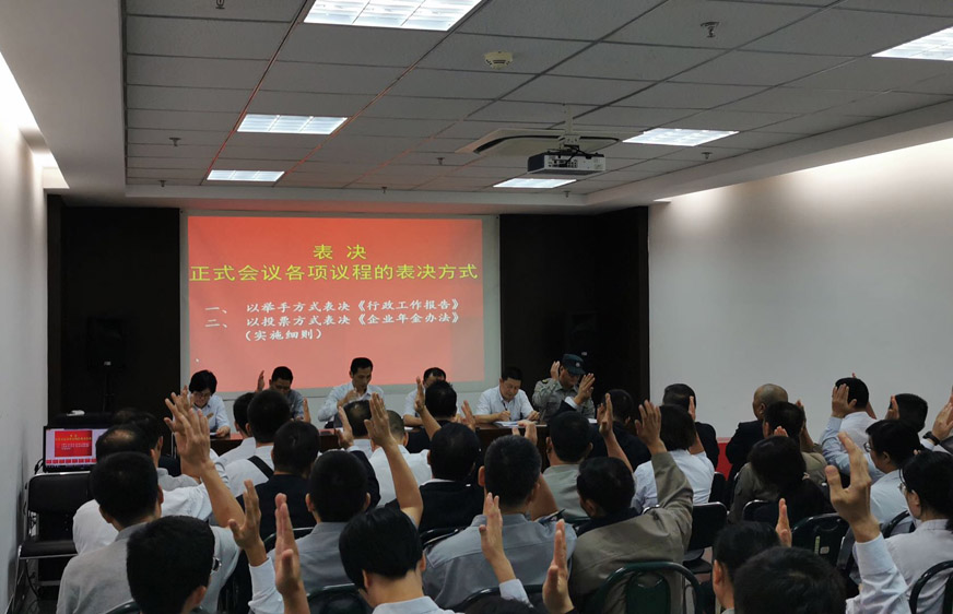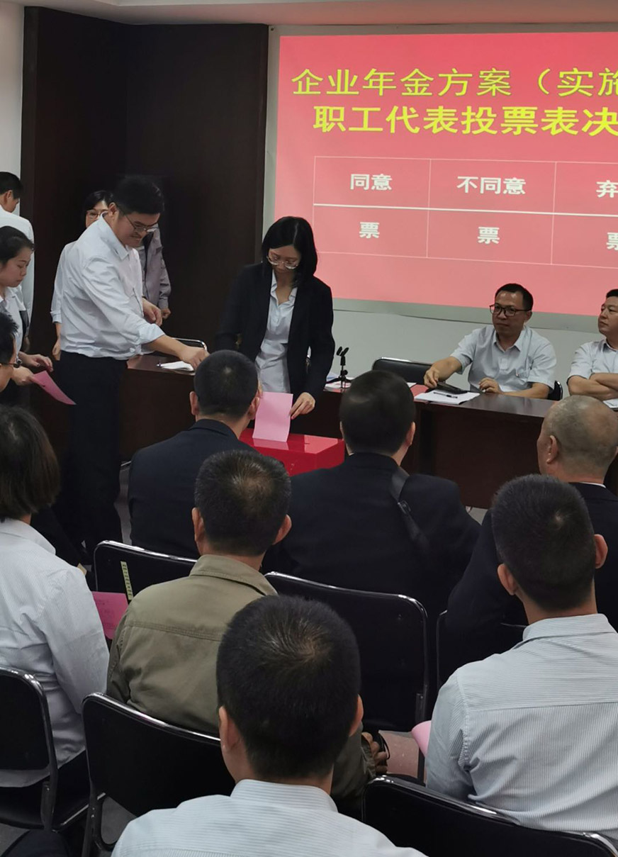 行政部負責人向大會(huì )作了《企業(yè)年金方案》的講解和說(shuō)明,職工代表分組就《企業(yè)年金方案(實(shí)施細則)》進(jìn)行討論,最后與會(huì )職工代表以無(wú)記名投票方式表決通過(guò)了《企業(yè)年金方案(實(shí)施細則)》。