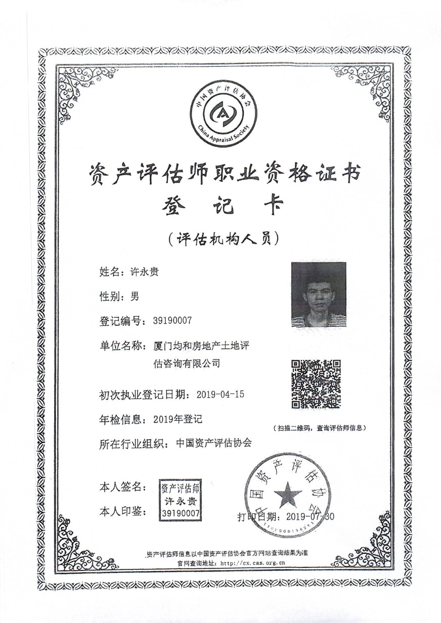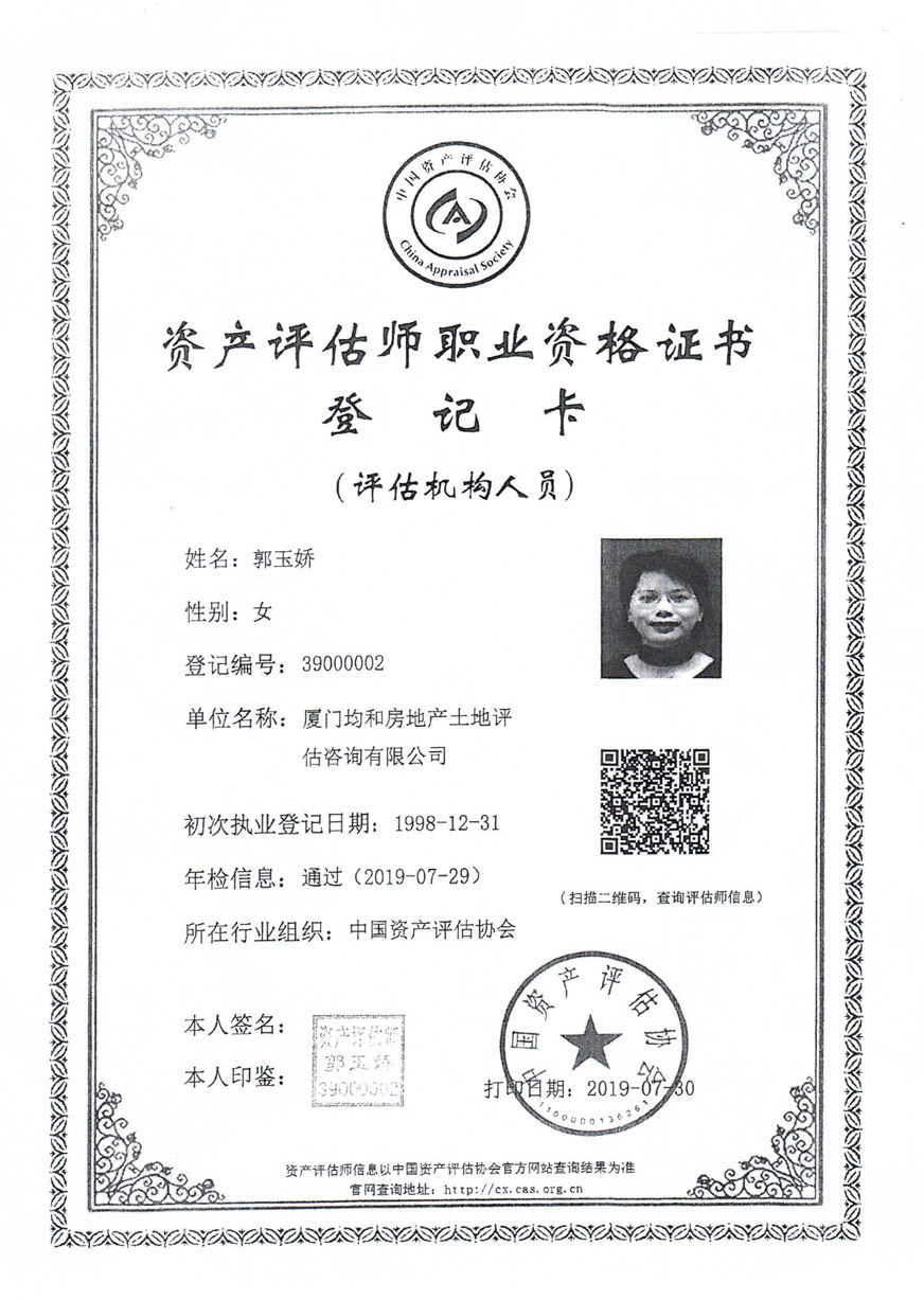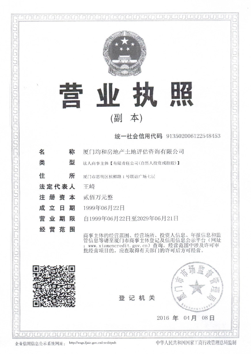 2.廈門(mén)均和房地產(chǎn)土地評估咨詢(xún)有限公司相關(guān)資質(zhì)證書(shū)