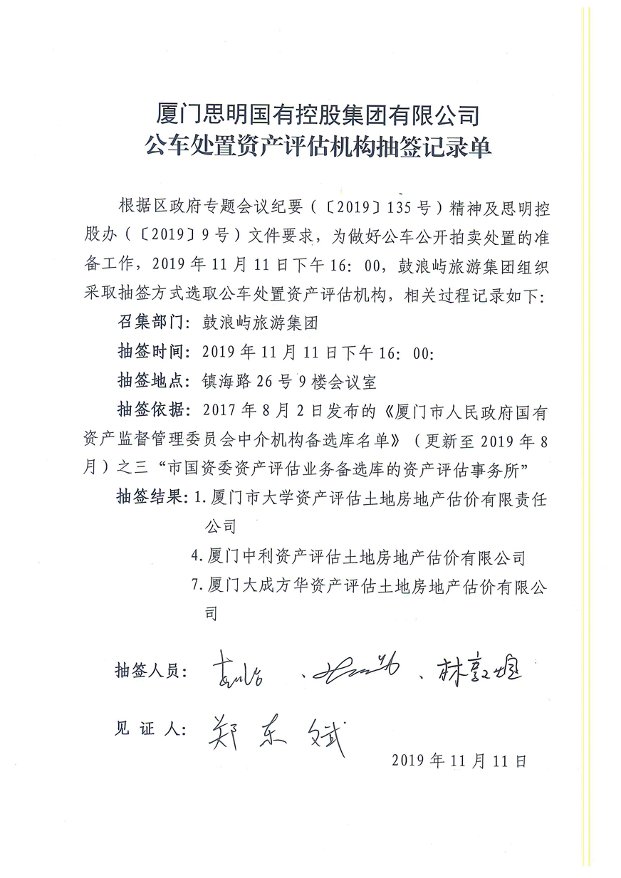 附件:1.《思明控股公車(chē)處置(第四批)資產(chǎn)評估機構抽簽記錄單》;