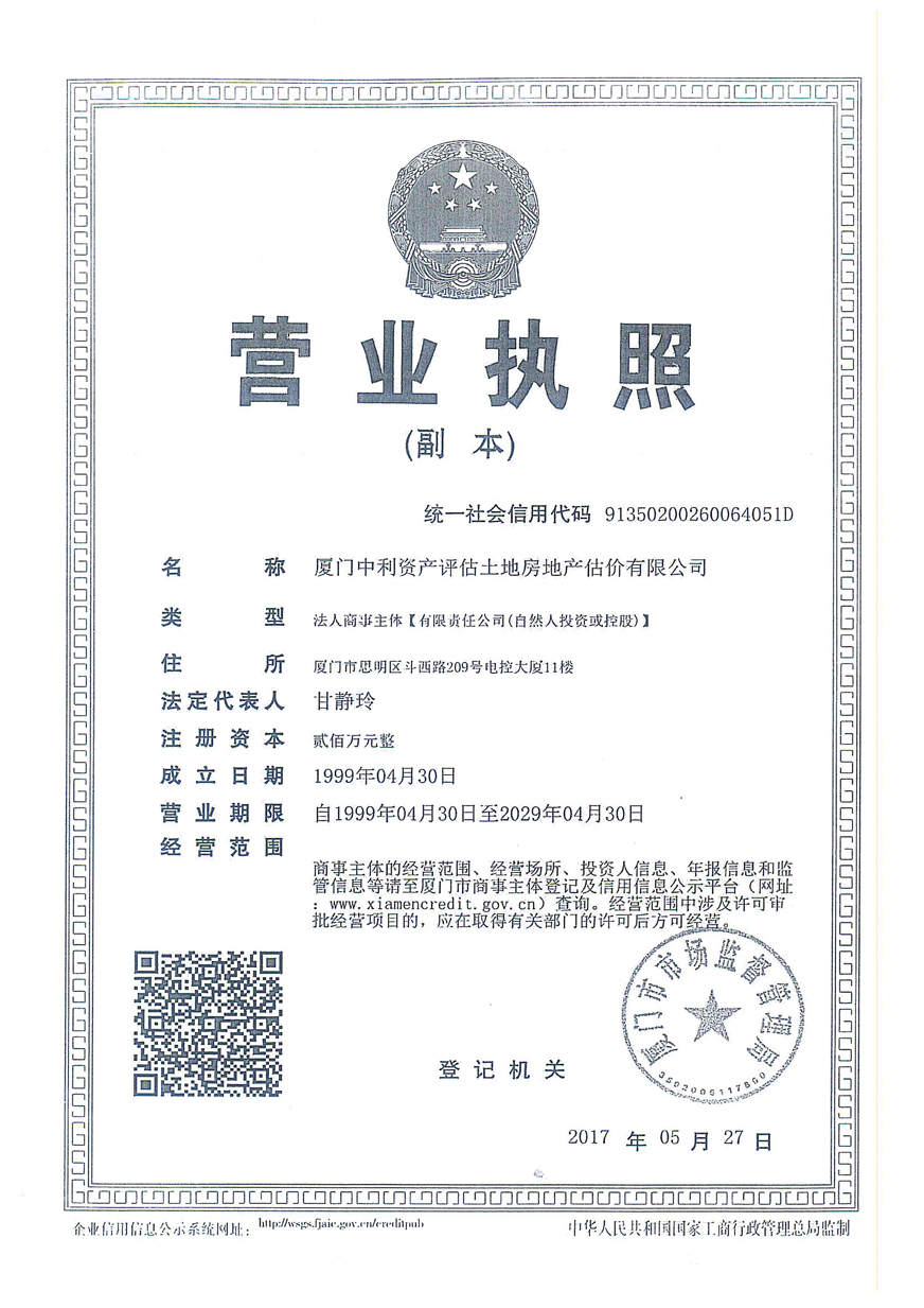 3. 廈門(mén)中利資產(chǎn)評估土地房地產(chǎn)估價(jià)有限公司營(yíng)業(yè)執照、評估資格證書(shū)復印件及注冊評估師林寧、鄭婷婷資質(zhì)證書(shū)復印件;