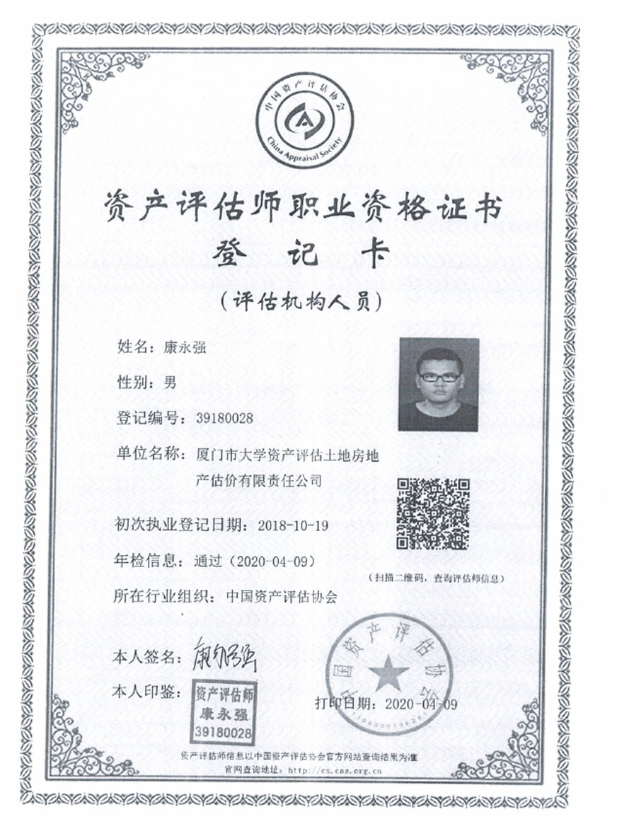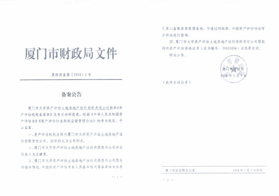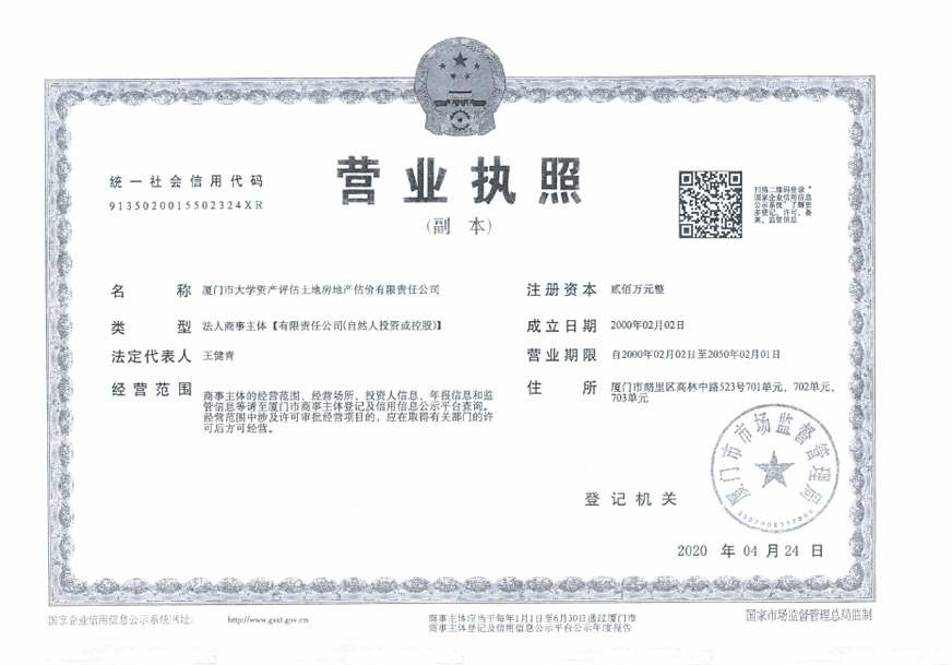 2. 廈門(mén)市大學(xué)資產(chǎn)評估土地房地產(chǎn)估價(jià)有限責任公司相關(guān)資質(zhì)證書(shū)