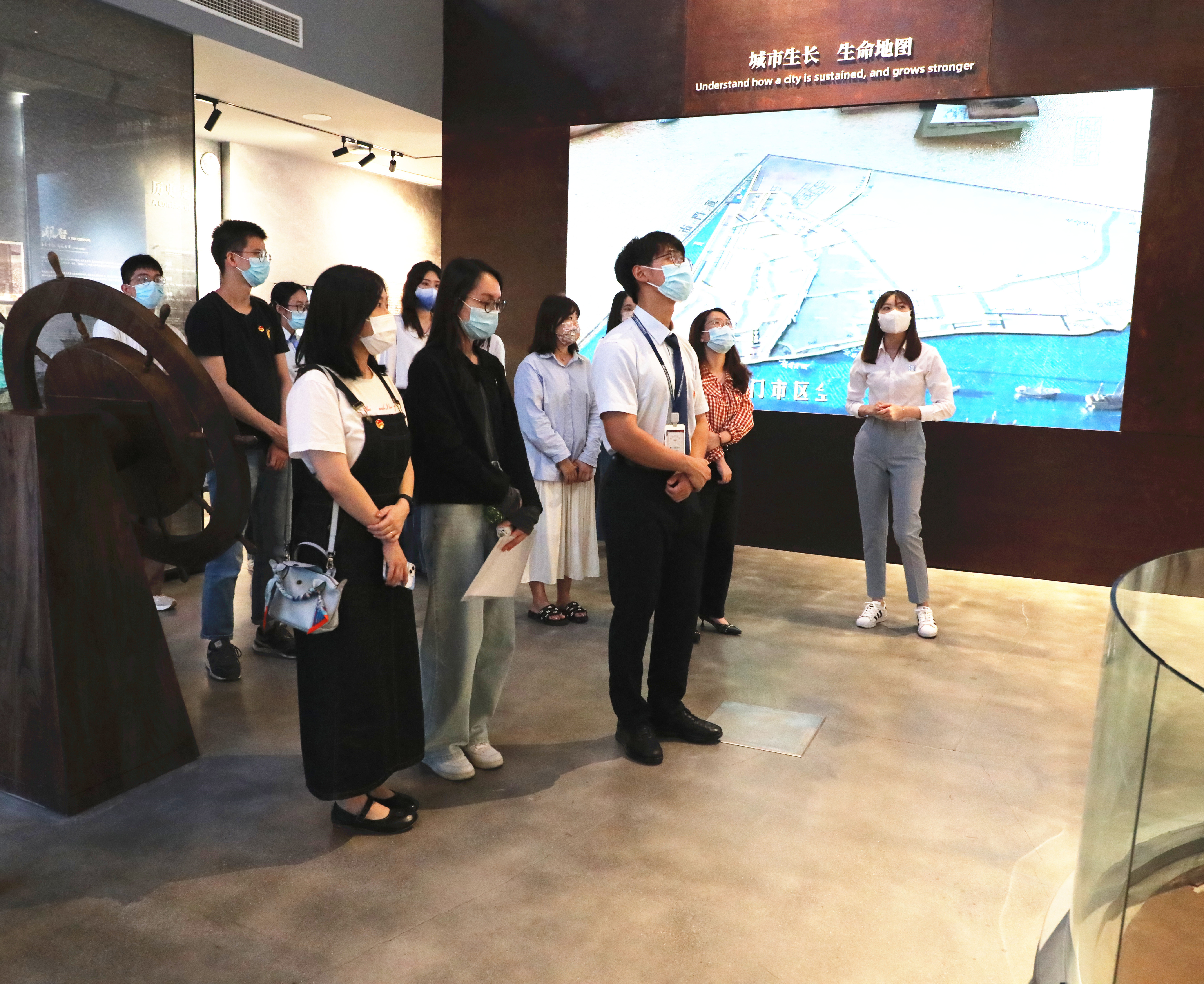 團員們首先參觀(guān)了城記·中山路展館。這是思明城區文化更新一個(gè)極具代表性、藝術(shù)性的項目,自今年4月正式開(kāi)放以來(lái),受到市民游客的廣泛關(guān)注。建筑是城市的編年史,中山路更是廈門(mén)經(jīng)濟騰飛與發(fā)展的縮影。通過(guò)展館內“人文之光”“歷史走廊”“記憶場(chǎng)景”“未來(lái)暢想”四個(gè)主題講述,大家在鮮活的場(chǎng)景中,聆聽(tīng)、體驗中山路的“前世今生”;也通過(guò)這場(chǎng)穿越之旅,大家深切感受到廈門(mén)這座城市的變遷與發(fā)展。歲月不居,時(shí)節如流,改革開(kāi)放四十年光陰一倏而過(guò),廣大青年作為城市歷史的見(jiàn)證者和參與者,建設廈門(mén)高素質(zhì)高顏值現代化國際化城市重任在肩、時(shí)不我待。