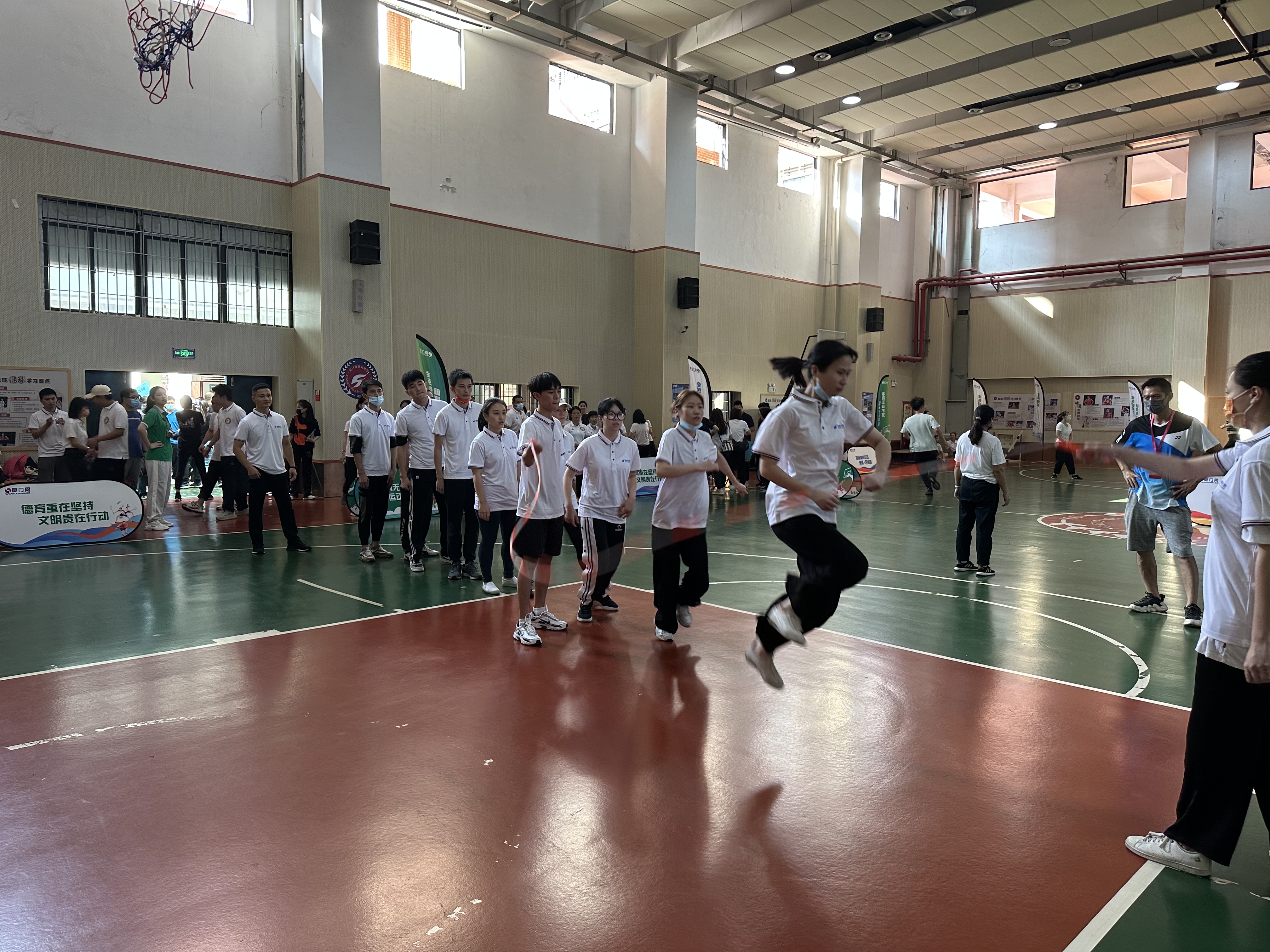 11月12日下午,2022年思明區全民健身運動(dòng)會(huì )職工跳長(cháng)繩競賽在廈門(mén)五中籃球場(chǎng)舉行,這是運動(dòng)會(huì )職工力量組的第二項比賽。思明控股集團由15名運動(dòng)員代表組成的參賽隊,齊心協(xié)力,越戰越勇,繼8月7日拔河比賽捧起冠軍獎杯后,又捧起了跳長(cháng)繩競賽的季軍獎杯。