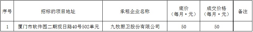 根據思明區國有企業(yè)資產(chǎn)出租管理的相關(guān)制度,我司2019年4月11日上午9:00于觀(guān)音山營(yíng)運中心2號樓2層2號會(huì )議室進(jìn)行公開(kāi)招租現場(chǎng)開(kāi)標,現通過(guò)思明控股網(wǎng)站對外發(fā)布成交公告。內容如下: